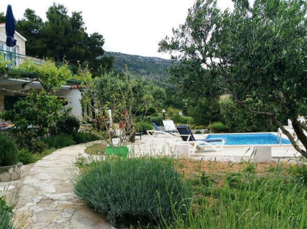 Iza kuće se nalazi zasebni objekt s roštiljem u zatvorenom prostoru kojega možete uvijek koristiti. Ispred kuće se nalazi bazen s okolišem od poznatog bijelog Bračkog kamena